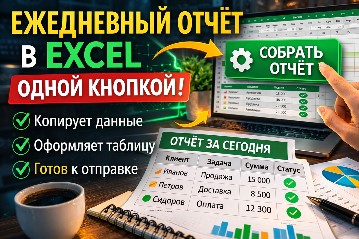 Автоматизация в Excel по-настоящему начинается не там, где код сложный, а там, где он снимает повторяющуюся рутину с реальной работы. Ежедневный отчёт — идеальный пример такой задачи. Структура знакомая, боль понятная, выгода мгновенная.