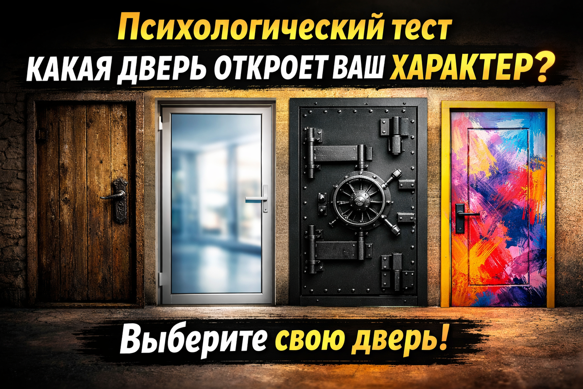 Иногда приходится толкать ее всем весом. А иногда мы долго стоим перед ней и думаем: стоит ли заходить вообще. Посмотрите на четыре двери ниже и выберите одну. ❗ Важно: не анализируйте. Выберите ту дверь, на которую взгляд упал первой, даже если не можете объяснить почему. Первая реакция - это не логика, это способ, которым вы встречаете перемены. Вы человек устойчивости. Даже если вокруг все меняется, вы интуитивно ищете точку опоры. Вам важно понимать, на чем держится мир. Вы не гонитесь за новизной ради новизны.