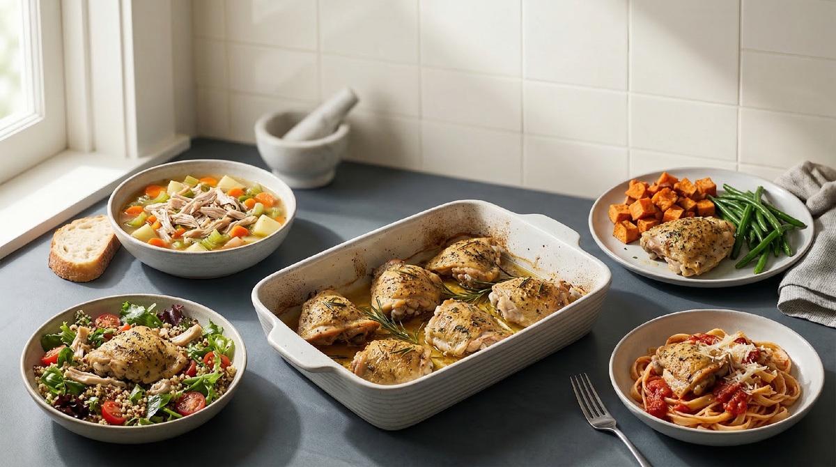 Речь не о героической готовке. Речь о том, чтобы один раз заложить основу и потом не собирать ужин с нуля. Самая недооценённая роскошь взрослой жизни — открыть холодильник и не почувствовать внутреннее “так, опять надо что-то придумывать”. Именно поэтому одна хорошая заготовка часто делает для недели больше, чем 10 мотивационных обещаний “с понедельника питаться нормально”. Многим кажется, что заготовка — это что-то скучное, жёсткое и не очень жизненное. Будто вы один раз готовите что-то в огромном количестве и потом всю неделю едите одно и то же. Но хорошие заготовки работают иначе. Их задача не накормить вас “одинаковой едой на 5 дней”. Их задача — убрать момент, в котором каждый вечер всё приходится решать заново. Например, у вас есть одна готовая белковая база. Это может быть: