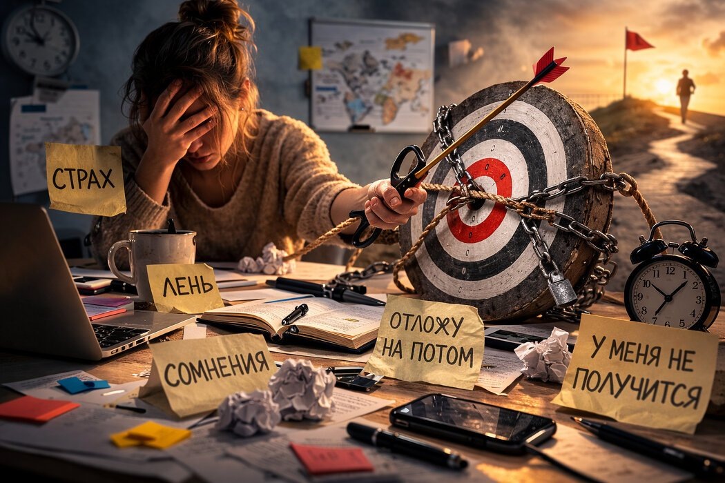 Многие люди уверены, что если цель правильная и желанная, мозг должен помогать ее достигать. Однако на практике часто происходит обратное. Человек принимает решение изменить жизнь, начать новый проект или выйти из сложных отношений, но спустя время сталкивается с прокрастинацией, сомнениями и потерей мотивации. Появляется ощущение, что внутри включается механизм сопротивления. На самом деле мозг действует логично. Его главная задача не ваш успех и самореализация, а выживание и экономия энергии. Именно поэтому любые изменения могут восприниматься как потенциальная угроза. Есть несколько механизмов, из-за которых мозг может саботировать цели: 1) Избегание неопределенности Для нервной системы неизвестность часто оказывается более стрессовой, чем предсказуемая неприятная ситуация. Поэтому человек может годами оставаться в неудовлетворяющих отношениях, не менять работу или откладывать важные решения. 2) Предвзятость подтверждения Мозг стремится подтверждать уже существующие убеждения. Если
