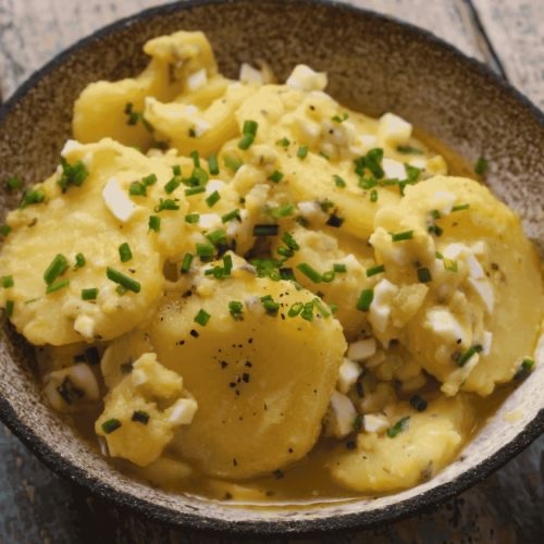 Картофельный салат в Германии — это не майонезная смесь, к которой привыкли многие. В классическом варианте он готовится на основе бульона и масла и может быть как тёплым, так и холодным.