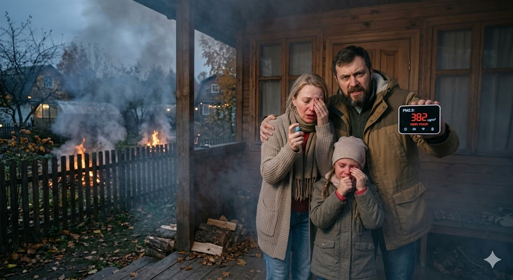 Каждую осень во многих посёлках, дачных кооперативах и частных секторах повторяется одна и та же картина: люди сжигают опавшие листья, ветки, траву. Дым стоит плотной пеленой, заходит в дома даже через закрытые окна, вызывает кашель, слезотечение, приступы удушья у астматиков, головные боли у детей и взрослых. Закрыть все щели невозможно, проветривать — значит впускать ещё больше дыма. Многие семьи сталкиваются с выбором: либо терпеть, либо уезжать на время осени.