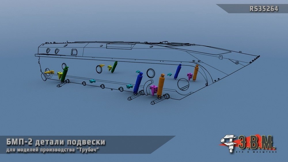 Э.В.М. из Севастополя выпустит на 3D-принтере элементы ходовой части для модели БМП-2 и машин на ее базе в масштабе 1/35 от Trumpeter.
