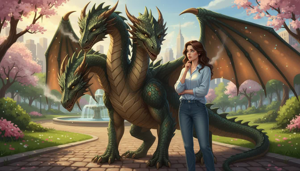 Варя рванула с места. Детская площадка встретила её визгом и смехом. Варя выглянула из-за кустов и обомлела. На горке сидел Горыныч-младший. Маленький, размером с пони, со смешным хохолком на макушке и с явно довольным выражением морд. Вокруг него прыгала стайка детей, которые пытались залезть на горку и погладить его по носу.