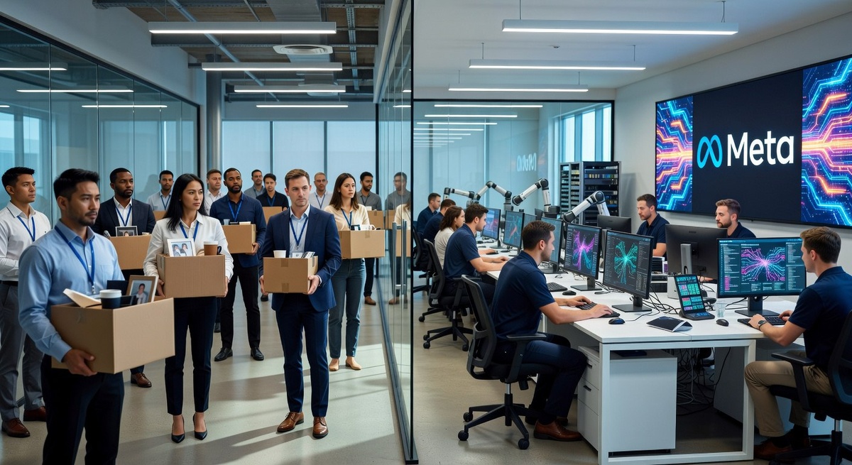 ΠΠΌΠ΅ΡΠΈΠΊΠ°Π½ΡΠΊΠ°Ρ ΠΊΠΎΡΠΏΠΎΡΠ°ΡΠΈΡ Meta (ΠΏΡΠΈΠ·Π½Π°Π½Π° ΡΠΊΡΡΡΠ΅ΠΌΠΈΡΡΡΠΊΠΎΠΉ ΠΎΡΠ³Π°Π½ΠΈΠ·Π°ΡΠΈΠ΅ΠΉ ΠΈ Π·Π°ΠΏΡΠ΅ΡΠ΅Π½Π° Π½Π° ΡΠ΅ΡΡΠΈΡΠΎΡΠΈΠΈ Π Π€) Π²Π½ΠΎΠ²Ρ ΠΎΠΊΠ°Π·Π°Π»Π°ΡΡ Π² ΡΠ΅Π½ΡΡΠ΅ Π²Π½ΠΈΠΌΠ°Π½ΠΈΡ ΠΌΠΈΡΠΎΠ²ΡΡ Π‘ΠΠ. Π‘ΠΎΠ³Π»Π°ΡΠ½ΠΎ ΠΏΠΎΡΠ»Π΅Π΄Π½ΠΈΠΌ Π΄Π°Π½Π½ΡΠΌ, ΠΎΠΏΡΠ±Π»ΠΈΠΊΠΎΠ²Π°Π½Π½ΡΠΌ Π°Π²ΡΠΎΡΠΈΡΠ΅ΡΠ½ΡΠΌ Π°Π³Π΅Π½ΡΡΡΠ²ΠΎΠΌ Reuters, ΡΠ΅Ρ Π½ΠΎΠ»ΠΎΠ³ΠΈΡΠ΅ΡΠΊΠΈΠΉ Π³ΠΈΠ³Π°Π½Ρ ΠΏΠ»Π°Π½ΠΈΡΡΠ΅Ρ ΠΌΠ°ΡΡΡΠ°Π±Π½ΡΡ ΡΠ΅ΡΡΡΡΠΊΡΡΡΠΈΠ·Π°ΡΠΈΡ, ΠΊΠΎΡΠΎΡΠ°Ρ Π½Π΅ΠΈΠ·Π±Π΅ΠΆΠ½ΠΎ ΠΏΠΎΠ²Π»Π΅ΡΠ΅Ρ Π·Π° ΡΠΎΠ±ΠΎΠΉ Π½ΠΎΠ²ΡΡ Π²ΠΎΠ»Π½Ρ ΠΌΠ°ΡΡΠΎΠ²ΡΡ ΡΠΎΠΊΡΠ°ΡΠ΅Π½ΠΈΠΉ ΠΏΠ΅ΡΡΠΎΠ½Π°Π»Π°. ΠΠ° ΡΡΠΎΡ ΡΠ°Π· ΠΏΡΠΈΡΠΈΠ½ΠΎΠΉ ΡΠ²ΠΎΠ»ΡΠ½Π΅Π½ΠΈΠΉ ΡΡΠ°Π» Π½Π΅ ΠΏΡΠΎΡΡΠΎ Π³Π»ΠΎΠ±Π°Π»ΡΠ½ΡΠΉ ΡΠΊΠΎΠ½ΠΎΠΌΠΈΡΠ΅ΡΠΊΠΈΠΉ ΡΠΏΠ°Π΄ ΠΈΠ»ΠΈ ΠΆΠ΅Π»Π°Π½ΠΈΠ΅ ΠΎΠΏΡΠΈΠΌΠΈΠ·ΠΈΡΠΎΠ²Π°ΡΡ ΡΠ΅ΠΊΡΡΠΈΠ΅ ΠΎΠΏΠ΅ΡΠ°ΡΠΈΠΎΠ½Π½ΡΠ΅ ΡΠ°ΡΡ ΠΎΠ΄Ρ, Π° ΠΊΠ°ΡΠ΄ΠΈΠ½Π°Π»ΡΠ½Π°Ρ ΡΠΌΠ΅Π½Π° ΡΡΡΠ°ΡΠ΅Π³ΠΈΡΠ΅ΡΠΊΠΎΠ³ΠΎ ΠΊΡΡΡΠ° ΠΊΠΎΠΌΠΏΠ°Π½ΠΈΠΈ. Π ΡΠΊΠΎΠ²ΠΎΠ΄ΡΡΠ²ΠΎ Π΄Π΅Π»Π°Π΅Ρ Π±Π΅ΡΠΏΡΠ΅ΡΠ΅Π΄Π΅Π½ΡΠ½ΡΡ ΡΡΠ°Π²ΠΊΡ Π½Π° ΡΠ°Π·Π²ΠΈΡΠΈΠ΅ ΡΠ΅Ρ Π½ΠΎΠ»ΠΎΠ³ΠΈΠΉ ΠΈΡΠΊΡΡΡΡΠ²Π΅Π½Π½ΠΎΠ³ΠΎ ΠΈΠ½ΡΠ΅Π»Π»Π΅ΠΊΡΠ°, ΡΡΠΎ ΡΡΠ΅Π±ΡΠ΅Ρ ΠΊΠΎΠ»ΠΎΡΡΠ°Π»ΡΠ½ΡΡ ΡΠΈΠ½Π°Π½ΡΠΎΠ²ΡΡ Π²Π»ΠΈΠ²Π°Π½ΠΈΠΉ.