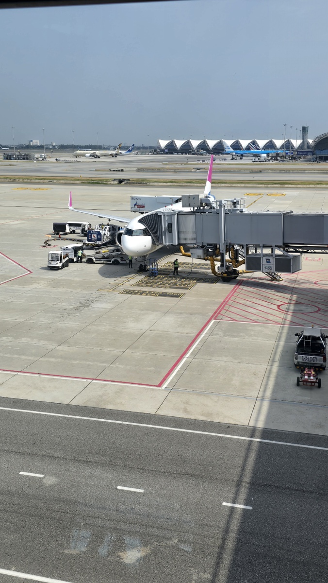 Самолет наш в Бангкоке подъехал к телетрапу за час до вылета - и началась разгрузка багажа с предыдущего рейса.