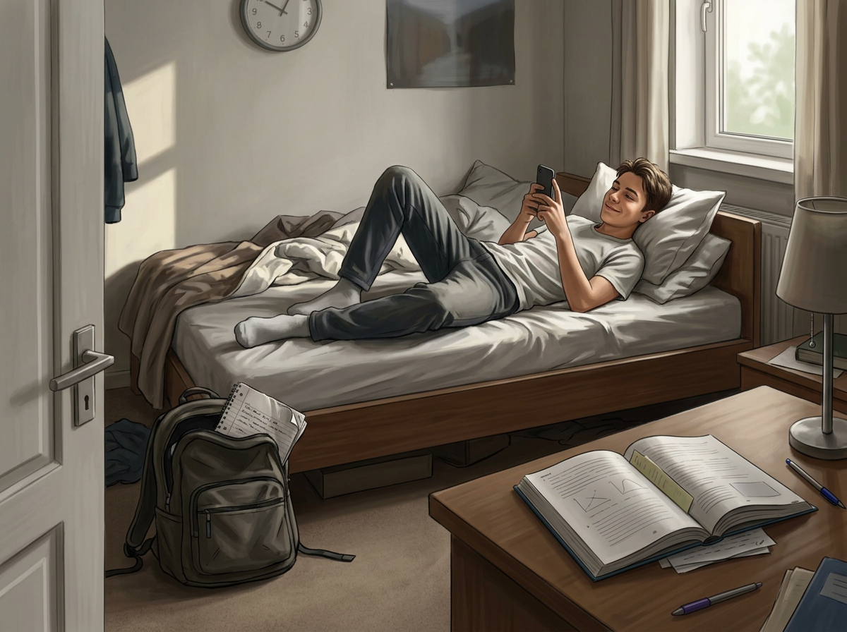 На заметку: система вознаграждения в подростковом мозгу уже работает на полную мощность. Она отлично реагирует на быструю награду: победа в игре, лайки, смешное видео. Тормозная система, которая умеет планировать, откладывать удовольствие и оценивать далекие последствия, дозревает последней. Кстати, «последней» — это примерно к двадцати пяти годам. Именно этот разрыв создает то, что мы видим как лень: подросток часами делает то, что приносит быструю отдачу, и буксует на всем, где результат далеко.