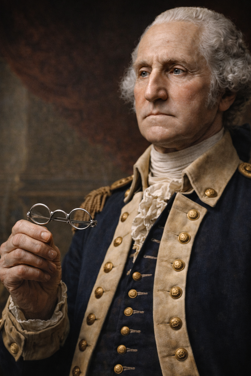 Вашингтон появился лично. Он был видимым, узнаваемым и немолодым — человеком, который провёл с ними все эти годы. Его очки в тот момент сделали его не командиром, апеллирующим к дисциплине, а человеком, разделившим с ними нечто личное. Раздражение, направленное на абстрактное, труднее сохранять, когда перед тобой стоит конкретный человек с конкретной историей.