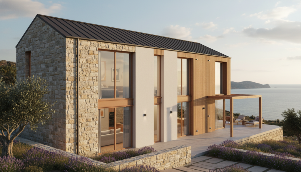 И вот тут важный момент: дом по технологии SCIP держит геометрию и нагрузку сам по себе, за счёт монолитного армированного слоя бетона и пенополистирольного ядра, а отделка уже работает как «броня» и климатический фильтр. Если этот слой сделать случайным набором материалов «что было в наличии», дом будет теплым, но внешний вид и комфорт быстро пострадают, особенно у моря.
