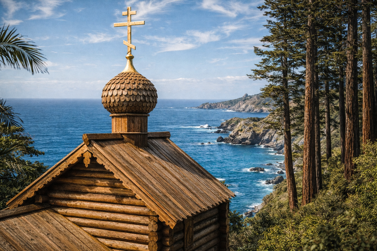 На берегу Тихого океана, примерно в ста километрах к северу от Сан-Франциско, до сих пор стоит деревянная православная часовня. Бревенчатые стены, небольшой купол, русский крест над входом. Вокруг — калифорнийский государственный парк, туристы с фотоаппаратами, запах океана и сосен.