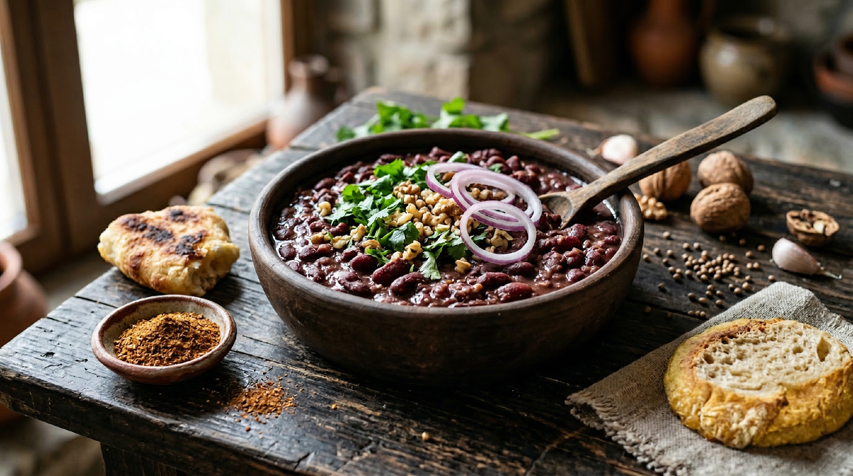 Я долго собирался написать об этом блюде, потому что тема, казалось бы, простая, а копнёшь глубже — и понимаешь, что за каждым рецептом стоит целая философия. Грузинская кухня вообще устроена так, что даже самые обычные продукты в умелых руках превращаются в нечто удивительное. Фасоль, лук, пара специй, зелень и орехи — вот, собственно, и всё. Но результат получается настолько многогранным, что хочется разбираться, откуда берётся эта магия.