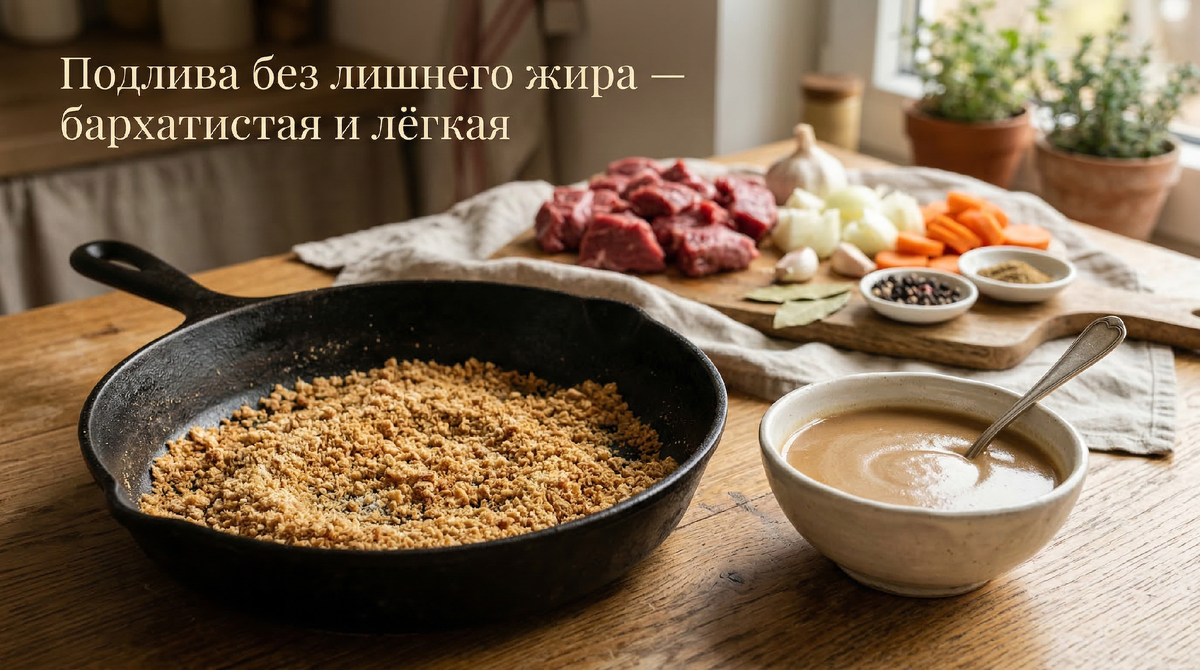 Давайте разберёмся, почему этот приём работает, какие процессы происходят с мукой при сухом обжаривании, и как именно применить этот метод, чтобы подлива получилась идеальной.