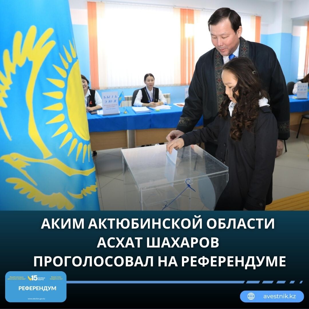 🗳️ Сегодня аким области Асхат Шахаров принял участие в республиканском референдуме по проекту новой Конституции