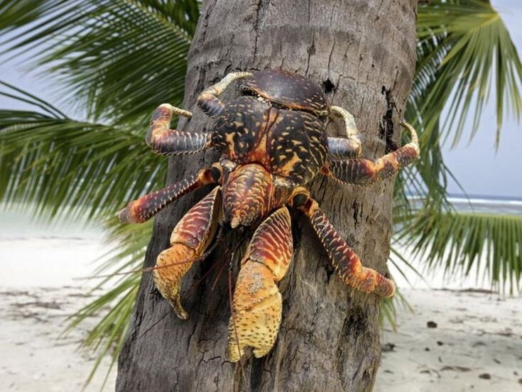 На тропических островах Индийского и Тихого океанов происходит странное: по ночам из-под пальм выползают существа размером с кошку, вскрывают мусорные баки, утаскивают оброненные туристами кроссовки и ловко орудуют клешнями, пытаясь добраться до содержимого консервных банок. Местные жители называют их грабителями, учёные — пальмовыми ворами (Birgus latro), а весь остальной мир знает их как кокосовых крабов — крупнейших наземных членистоногих планеты, которые когда-то умели плавать, но давно забыли об этом навыке за ненадобностью.