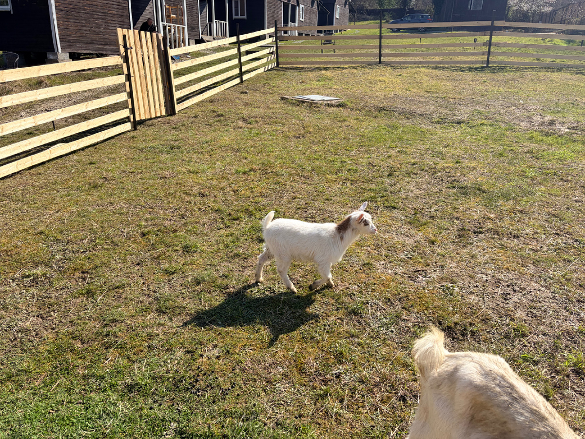 Изначально у нас было 3 маленьких козочки. Это было мило, гости у нас умилялись и фотографировались. Мы поставили им небольшой домик и оградили забором примерно в 2-3 метра от входа. Выпускали по вечерам и они гуляли по всей территории. Если вы планируете самых маленьких и самых игрушечных - даже для них огораживайте выпас.