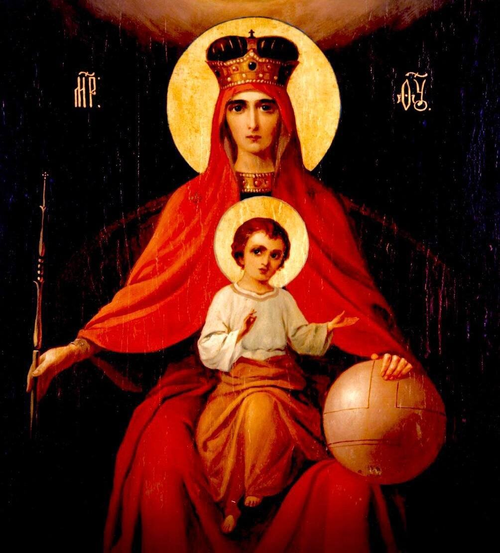 » (1917) Икона была явлена в 1917 году, в день отречения от престола императора Николая Второго. На изображении Божия Матерь держит скипетр и державу — символы царской власти. Для многих православных это было знаком, что Богородица сама приняла в руки заботу и попечение о стране. Сейчас образ находится в храме Казанской иконы Божией Матери в Коломенском. ☦️ Пресвятая Богородице, спаси нас!