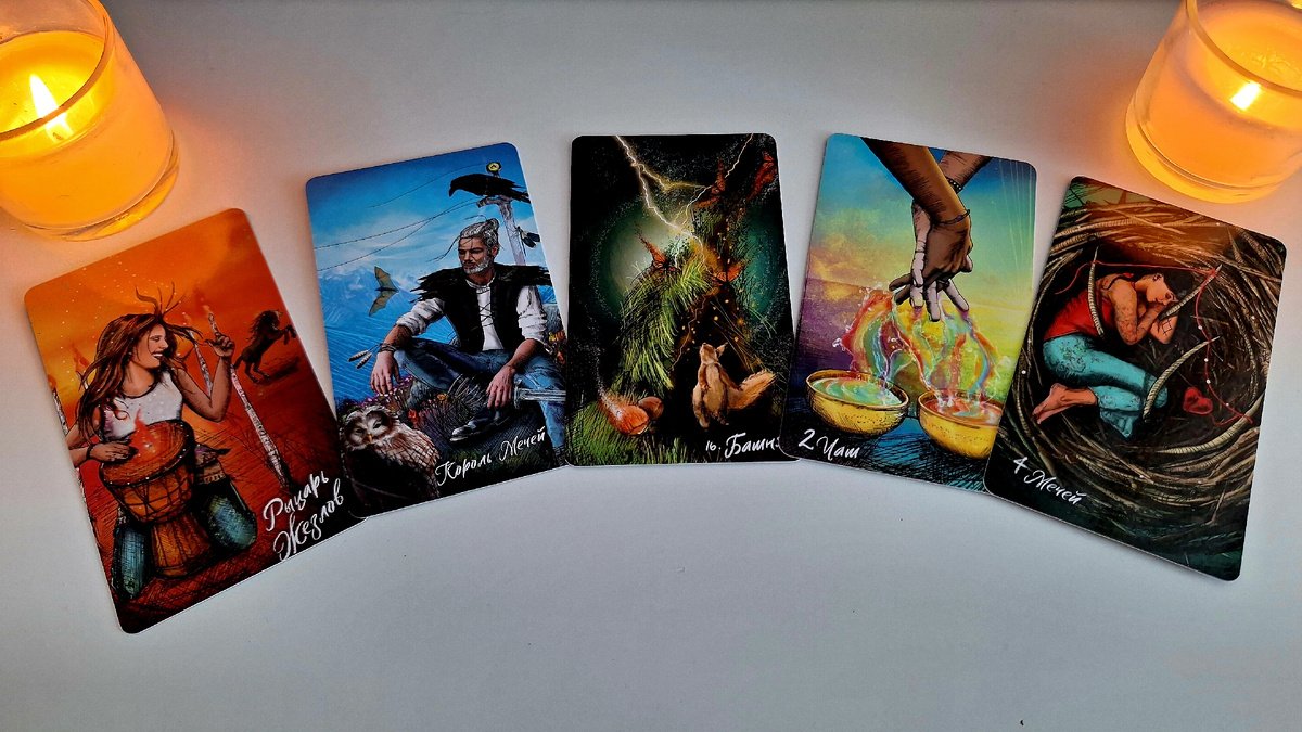 Сделайте спокойный вдох. Отпустите контроль. Я смотрю на расклад, который лег передо мной на стол, и у меня перехватывает дыхание от той мощной, почти электрической динамики, которая в нем заложена. Передо мной пять удивительных карт: Рыцарь Жезлов, Король Мечей, Башня, Двойка Чаш и Четверка Мечей. Я охватываю взглядом эту картину целиком, и первое, что хочу сказать - этот человек разделит вашу жизнь на "до" и "после". Это не мимолетный роман от скуки. Это встреча, которая несет в себе колоссальный заряд трансформации и, в конечном итоге, глубочайшего исцеления.
