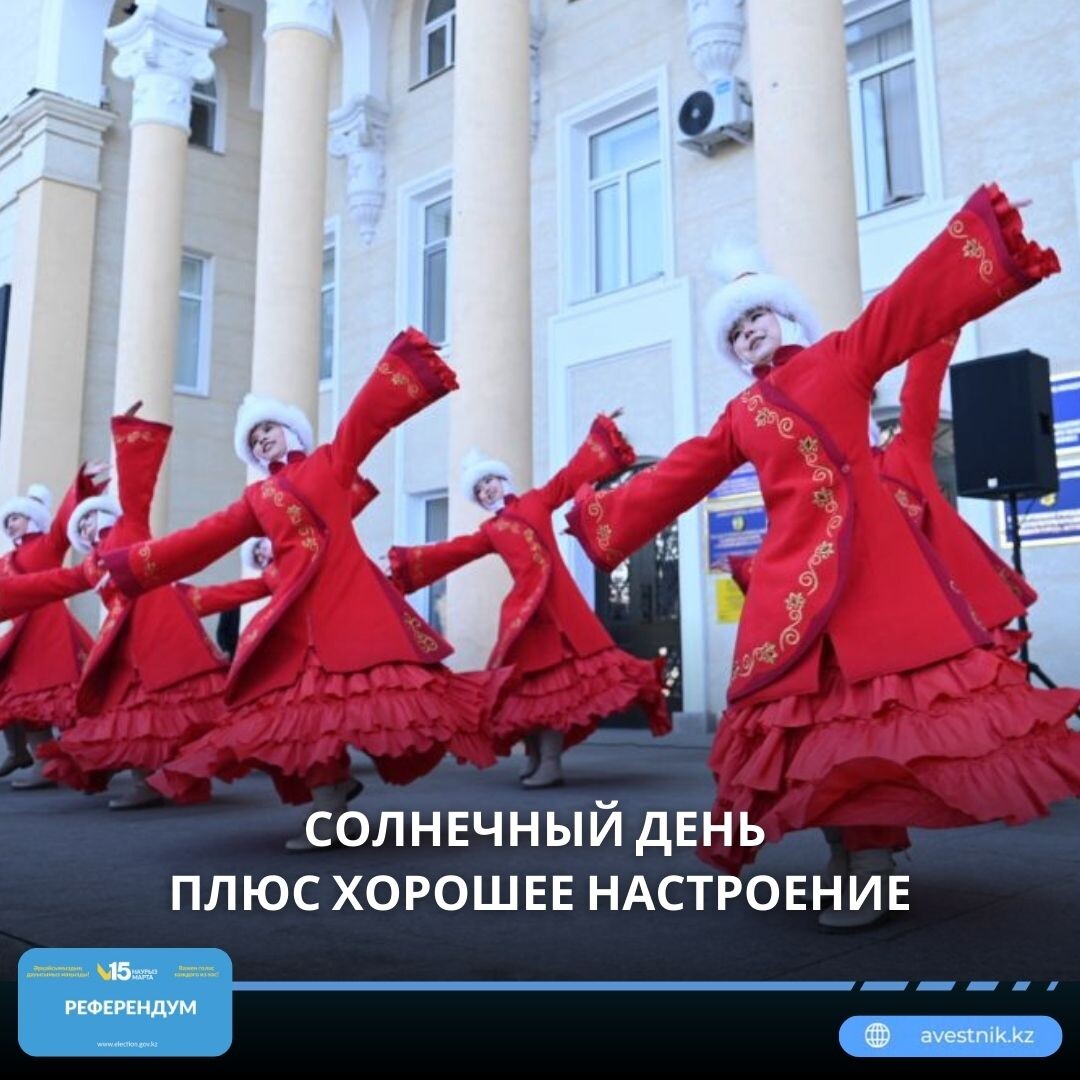 💃 Танцевальный коллектив «Әлия Гулі» выступал на импровизированной сцене перед Городским Дворцом культуры, заставляя голосующих задержаться. Свои песни дарила слушателям певица Нургуль Рамазанова. ✨ Внутри было многолюдно, люди активно голосовали, многие пришли в красочных национальных костюмах. По словам председателя комиссии референдума Ерулана Наурызбаева, жители близлежащих домов стали приходить на участок с самого открытия — с семи часов утра. — Хочу отметить, что голосование проходит очень активно. Участок был подготовлен оперативно еще 5 марта, — сказал председатель. 👁 Ход голосования отслеживала группа наблюдателей, состоящая из семи человек. — Мы здесь находимся с самого открытия. Все проходит в рамках закона, никаких нарушений не зафиксировано, — пояснила наблюдатель Гулим Каирова. ☀️ Было заметно, что голосующие приходили с хорошим настроением. И погода благоволила — яркое и теплое по-весеннему солнце, замечательный концерт, организованный силами ГДК. — Сегодня я прогол