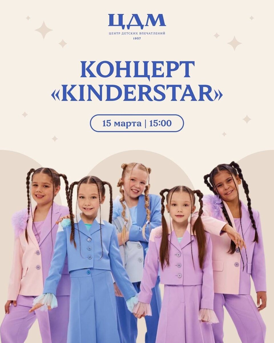 ! 🗓️15 марта 📍Центральный Детский Магазин На главной сцене Центрального Детского Магазина на Лубянке пройдет яркий концерт артистов продюсерского центра Анастасии Васкауцан. Юные исполнители — Егор Егоров, Поля Ива, Алиса Ди, Соня Звонова, Виолетта Золотова, Diasha, Verona Star и группа Kinderstar подарят зрителям любимые песни, премьерные выступления и много искренних эмоций. 📲МАХ/ 📱ВКонтакте 🆓 Бесплатно Подробнее ЗДЕСЬ 👨👩👧👦 @togetherwithkids Пост носит информационный характер Поддержать канал голосом ЗДЕСЬ