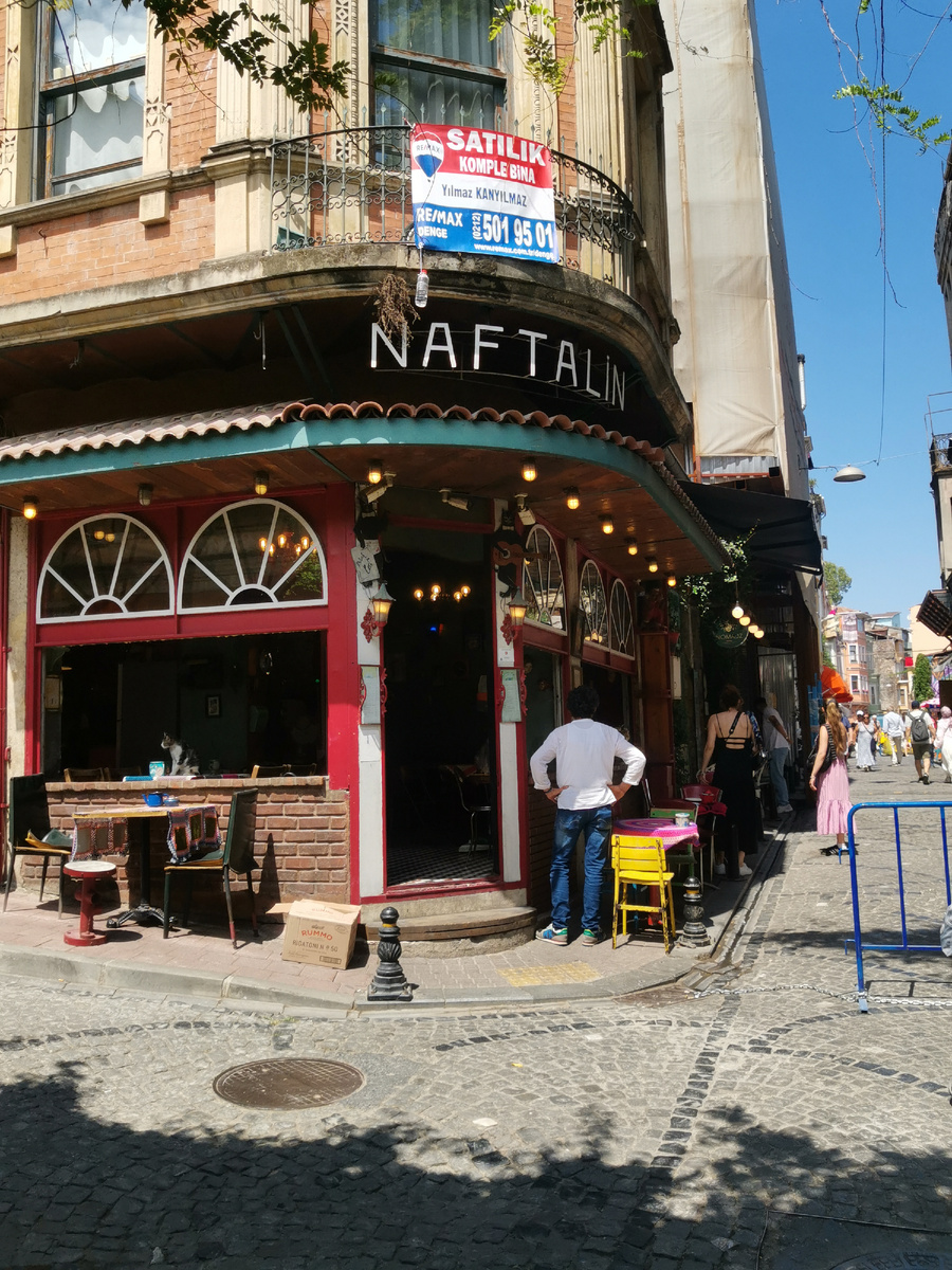 Прогуливаясь по Балату, невольно погружаешься в его милую и уютную атмосферу. Здесь каждый дом, каждая деталь интерьера притягивает взгляд. Именно так я наткнулась на кафе «Нафталин» – настоящую местную достопримечательность. Расположенное на углу старинного здания, которому уже более 150 лет, кафе просто невозможно пройти мимо. Как пишут сами хозяева на сайте: «Кафе Naftalin K. с винтажным интерьером находится в старом греческом районе Фенер-Балат. Здесь можно приятно провести время за чашечкой ароматного кофе, свежей домашней выпечкой и изысканными блюдами под звуки старого проигрывателя». История и концепция История «Нафталина» началась с антикварной лавки. Хозяева, ранее владевшие кафе напротив, решили объединить два концепта, когда здание потребовало ремонта. Так, купив лавку, они создали уникальное пространство. Название «Нафталин» отсылает к запаху из бабушкиных сундуков, ведь интерьер наполнен антикварными предметами. Но не волнуйтесь – нафталином в кафе не пахнет! Интерьер с д
