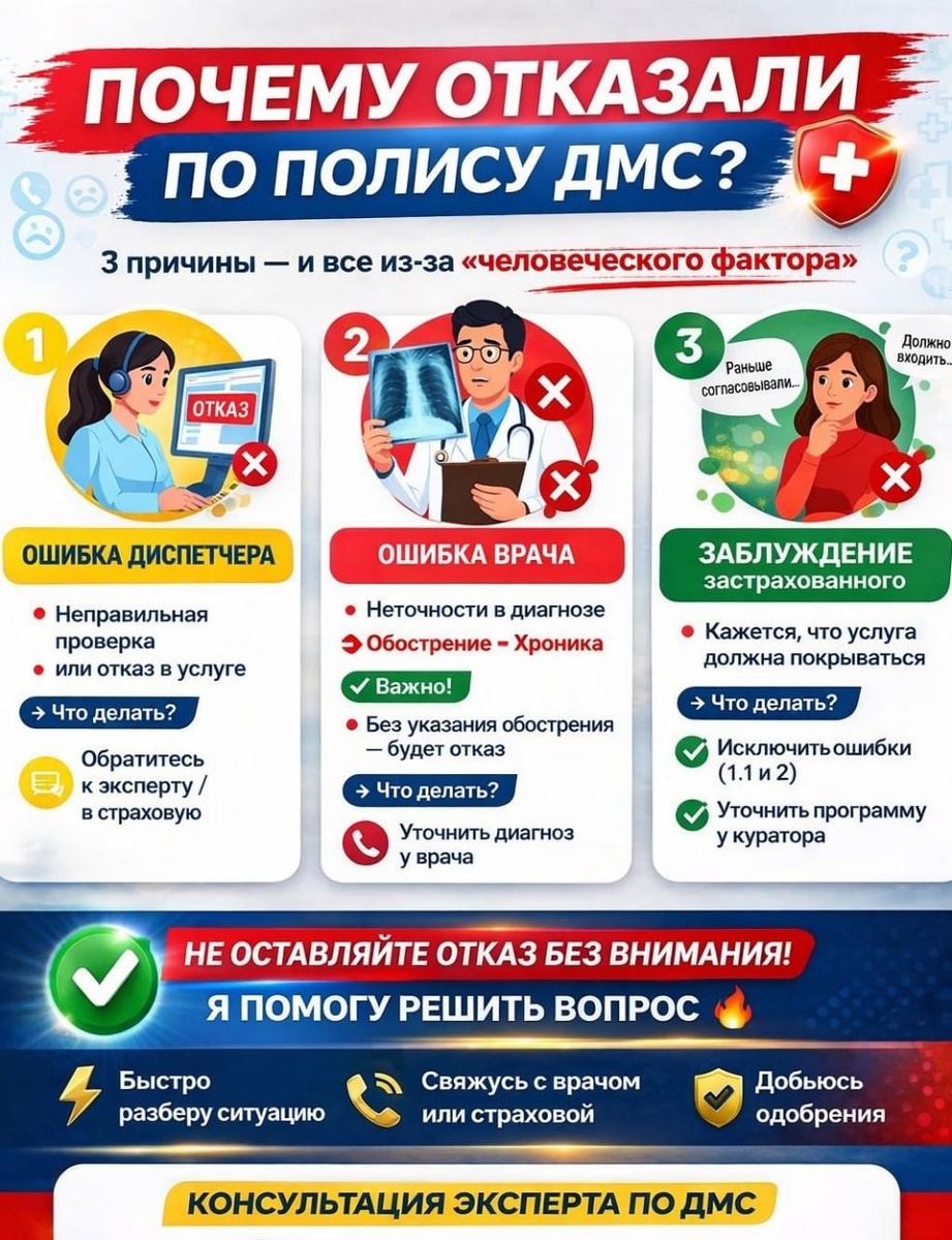 При обращении диспетчер медицинского пульта страховой компании "посмотрел не туда" и отказал в исследованиях, приëмах, анализах.