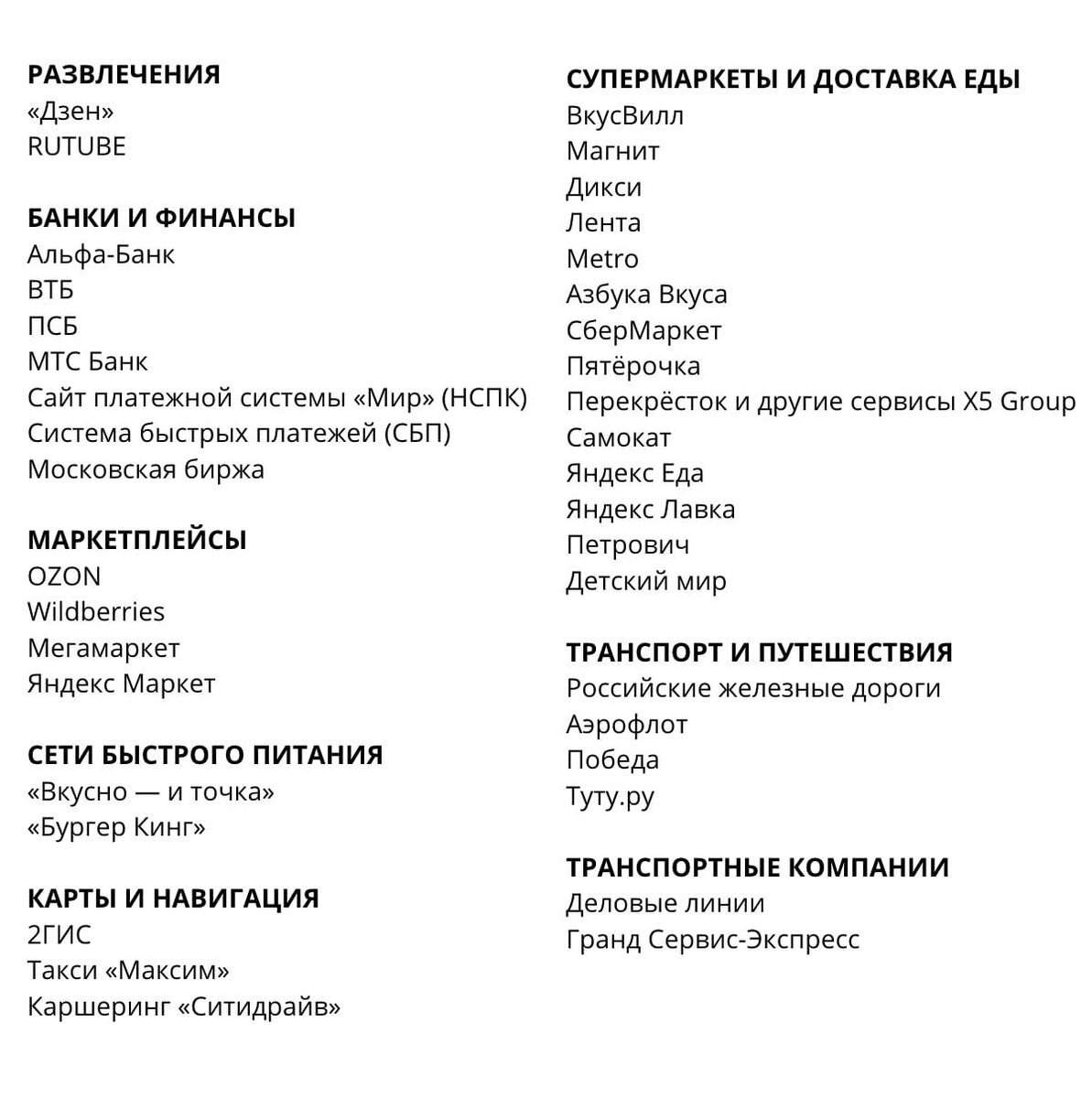 Обновлённый «Белый список» веб-сайтов и сервисов, доступных во время отключения интернета