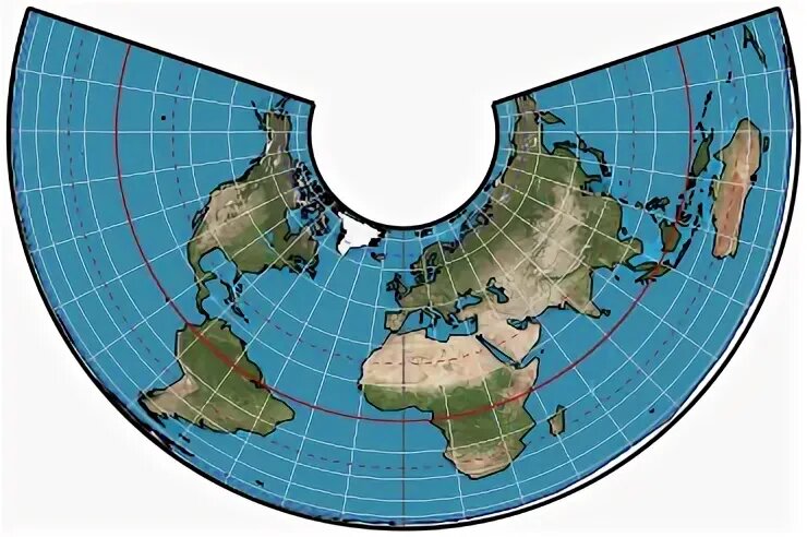 Или КОНИЧЕСКАЯ РАВНОВЕЛИКАЯ ПРОЕКЦИЯ АЛЬБЕРСА. Кто-то считает, что земля имеет форму шара. Кто-то убеждён, что его дурят, ибо земля-таки плоская. А что бы высказали, если бы вам предложили новую концепцию - "коническая планета"? И даже продемонстрировали бы "конический глобус". На самом деле, это та самая шутка, в которой лишь доля шутки. Потому что ПРОЕКЦИЯ АЛЬБЕРСА и в самом деле существует, то есть это не какое-то мракобесие, а вполне себе научный подход в картографии, который никак не отрицает факт "геоидности" нашей планеты. Более того, именно эту проекцию используют при проведении переписи населения, например, в США, Канаде и Бразилии. В целом же она используется для изображения регионов, вытянутых в широтном направлении (с запада на восток). В ПРОЕКЦИИ АЛЬБЕРСА меридианы представляют собой расположенные через одинаковые интервалы прямые линии, сходящиеся в одной точке. Параллели и оба полюса представлены в виде дуг окружности, центрированных в точке схождения меридианов. Рассто