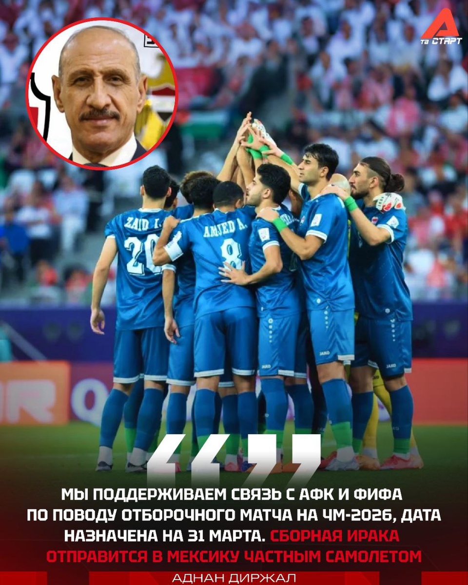 Логистические проблемы удалось решить при помощи чартера, заявил президент федерации футбола Ирака Аднан Диржал, его слова приводит Iraqi News Agency. Теперь выход на мундиаль зависит от самой сборной под руководством Грэма Арнольда. Ждем еще одного представителя Азии на ЧМ? 🤔 Подписывайся на ТВ СТАРТ в MAX📲