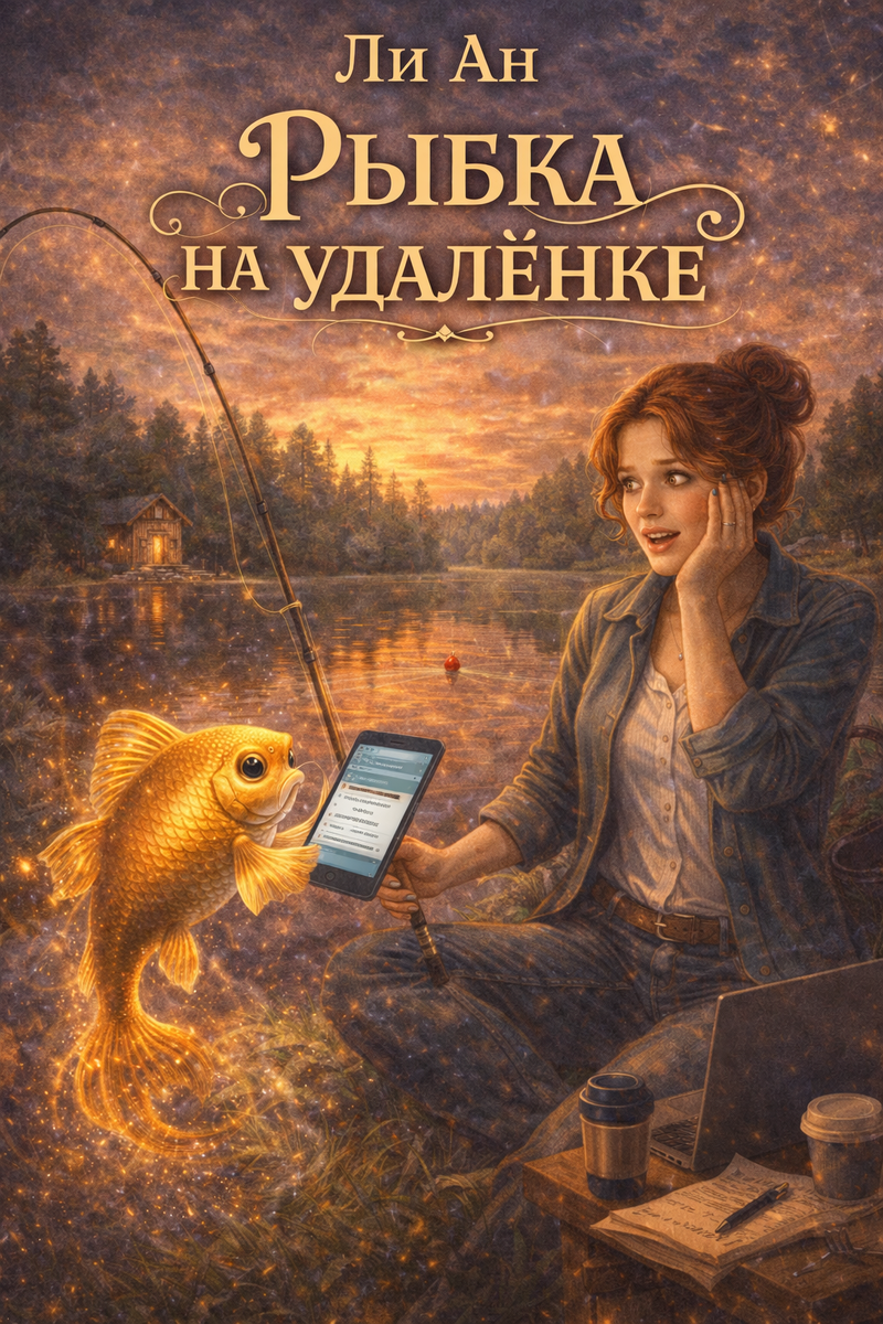 Сидела я на берегу, смотрела на поплавок и думала о том, что квартальный отчёт сам себя не сдаст, когда удочку рвануло. Я потянула. Из воды вылетела рыба. Золотая. Буквально — золотая, как монета, и светится.