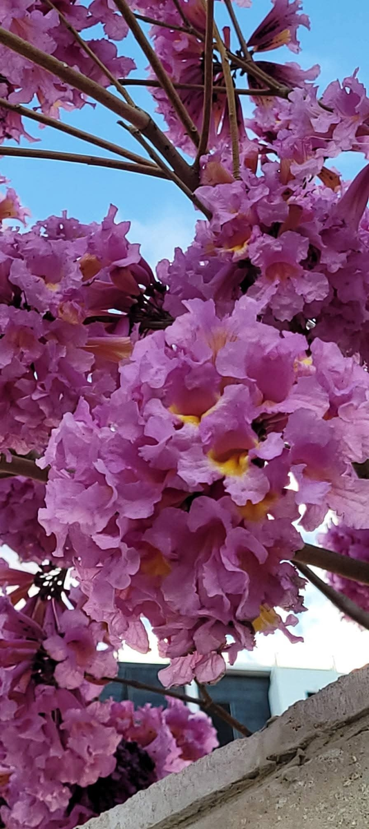Это удивительное дерево, название которого трудно запомнить, цветёт прямо сейчас. Оно прекрасно. Хандроантус импетигинозный ((лат. Handroanthus impetiginosa), или Табебуйя импетигинозная (по устаревшему синонимичному названию лат. Tabebuia impetiginosa), также известный под названиями Муравьиное дерево, Розовое ипе́, Розовое лапа́чо — древесное растение рода Хандроантус семейства Бигнониевые, произрастающее во всех государствах Центральной и Южной Америки от северной Мексики до северной Аргентины, особенно в Колумбии, Венесуэле, Бразилии. Является обычным растением в северо-восточных районах Аргентины и на юго-востоке Боливии. Местом происхождения этого дерева считаются острова Тринидад и Тобаго. Это дерево имеет долгую историю использования человеком, вследствие чего у него есть много местных названий: ипе-кавата, ипе-комум, ипе-рето, ипе-роса, ипе-рохо-дамата, лапачо негро, пау д’арко-рохо, пэува или пиува. Древесина иногда продаётся под названием «бразильское дерево», хотя это наз