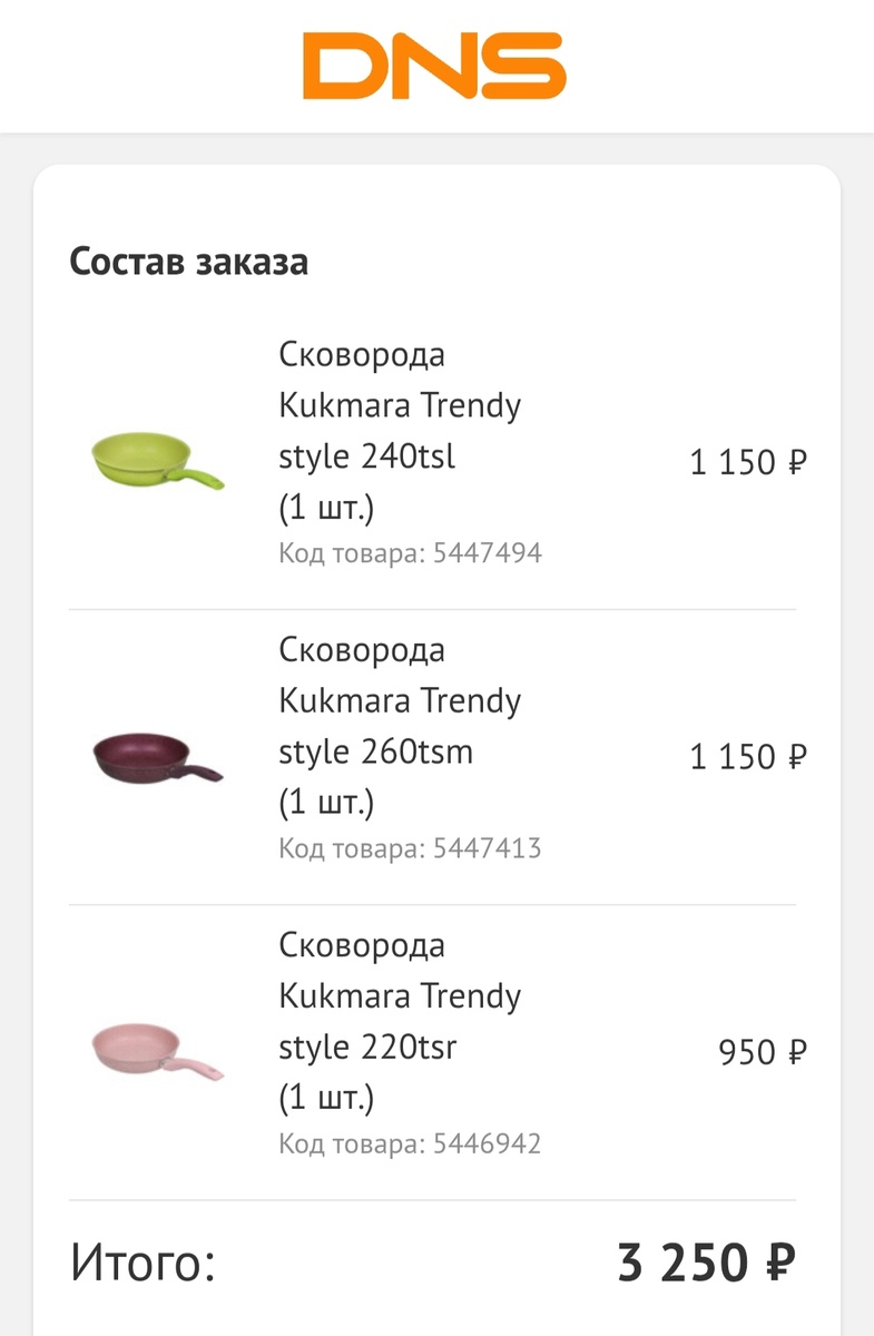 Первым делом обновила сковородки. В ДНС заказала разноцветные сковородочки "Кукмара" просто по смешным ценам.