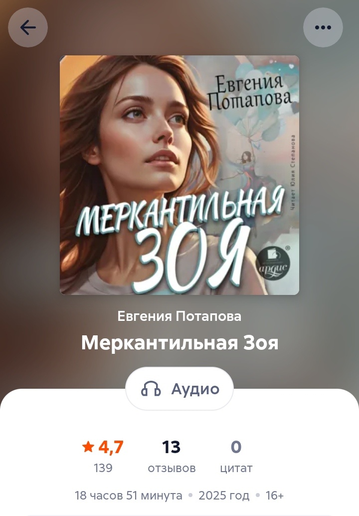 Пока ходила по магазинам в поисках кондиционера и антисиатика, слушала книгу Евгении Потаповой «Меркантильная Зоя».
