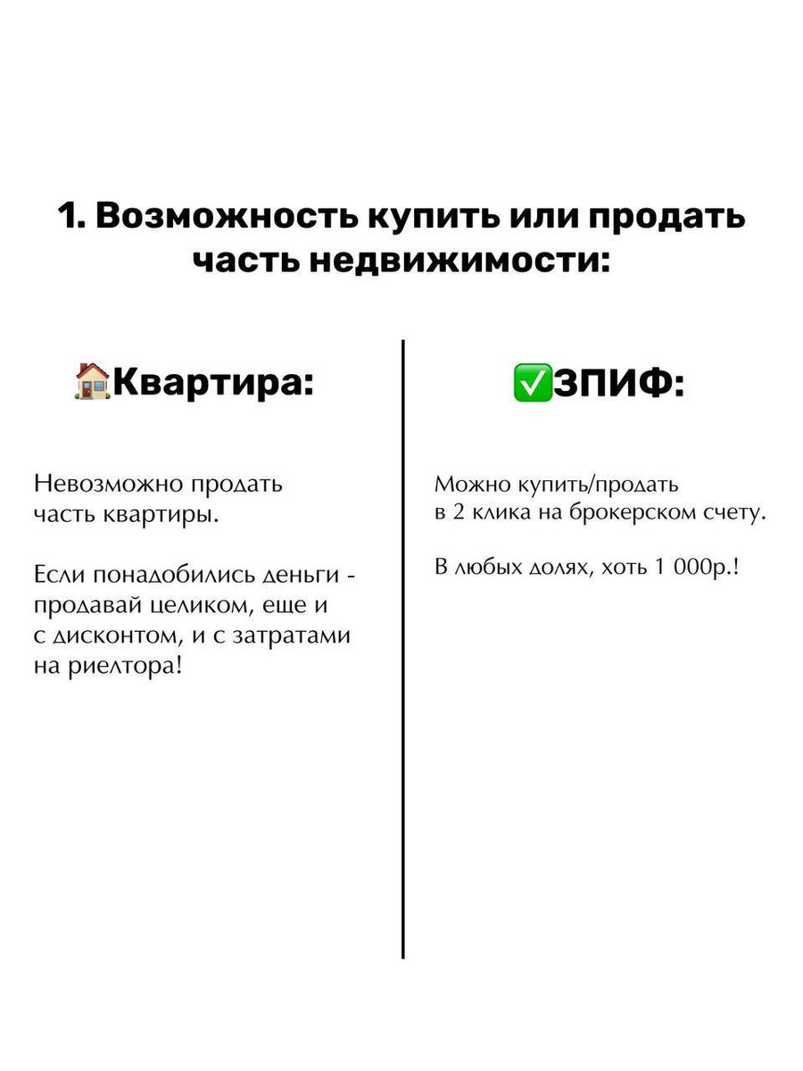 %? Коммерческая недвижимость в несколько раз доходнее, чем жилая. Иметь такой арендный бизнес хочет каждый. Теперь это стало возможно благодаря такому инструменту, как ЗПИФ! В развитых странах это называется REIT — фонд недвижимости, и занимают такие инвестиции от 15 до 30% в портфеле инвестора. Сегодня вы можете стать совладельцем Торгового центра или логистического склада и получасть стабильный денежный поток, просто купив ЗПИФ на бирже. В карусели сравнила недвижку и ЗПИФ, листайте➡️ При этом, как квартиру, так и проекты в ЗПИФ нужно очень внимательно проверять. Как вам такой вид инвестиций, вложились бы?🔥