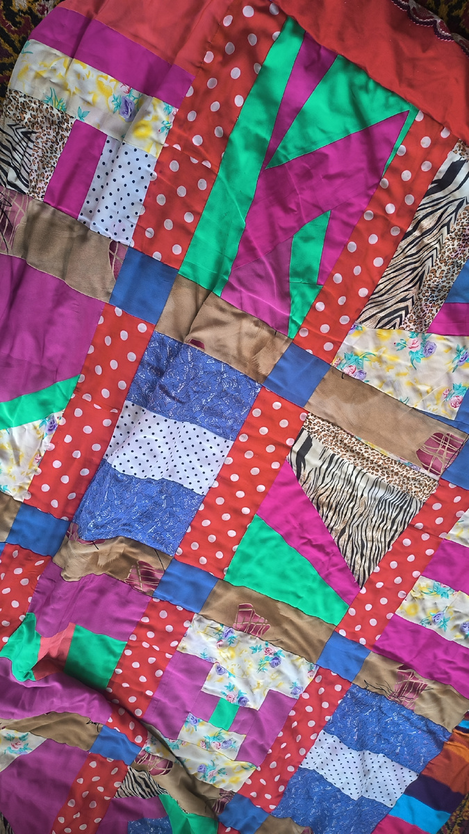 Шелковые ткани в лоскутном шитье смотрятся ярче и не выгорают со временем.