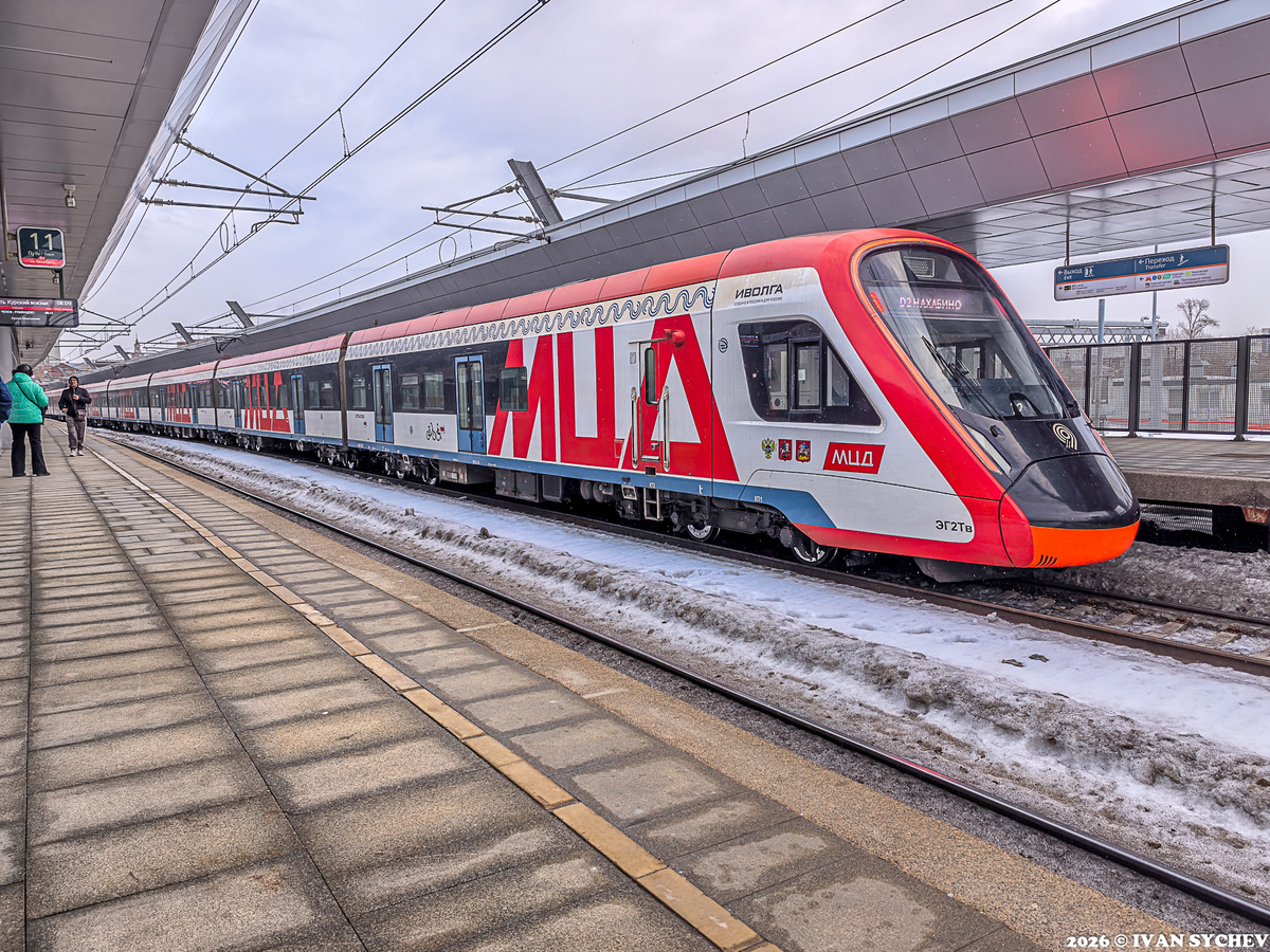 Эти фотографии уже не очень новые. Дело было в международный женский день, и именно восьмого марта путь автора фотографий был в оружейную столицу России. Столиц, кстати, в России хватает – третья, культурная, оружейная, металлургическая, Черноземья и т.д. В общем, человек поехал в Тулу, из Москвы, на «Ласточке». И сумел подсмотреть в окно достаточно любопытные сценки. Впрочем, началось все… 1. Впрочем. Началось все на Курском вокзале, где для начала была сфотографирована «Иволга», которая к пути в Тулу не имеет никакого отношения. Но просто красивый электропоезд, который работает (в данном случае) на МЦД-2. 2-3. Пока не объявлена посадка, можно попробовать сделать еще какие-то железнодорожные кадры. Например «сдвоенный» электропоезд. Хотя почему «сдвоенный», тут речь, конечно же об отражениях. Итак, ЭП2Д-0057 и его отражение. 4. Спустя полчаса, когда поезд уже отправился в Тулу и проходил мимо депо Люблино, в котором было много вагонов и почти не было локомотивов, между составами откры