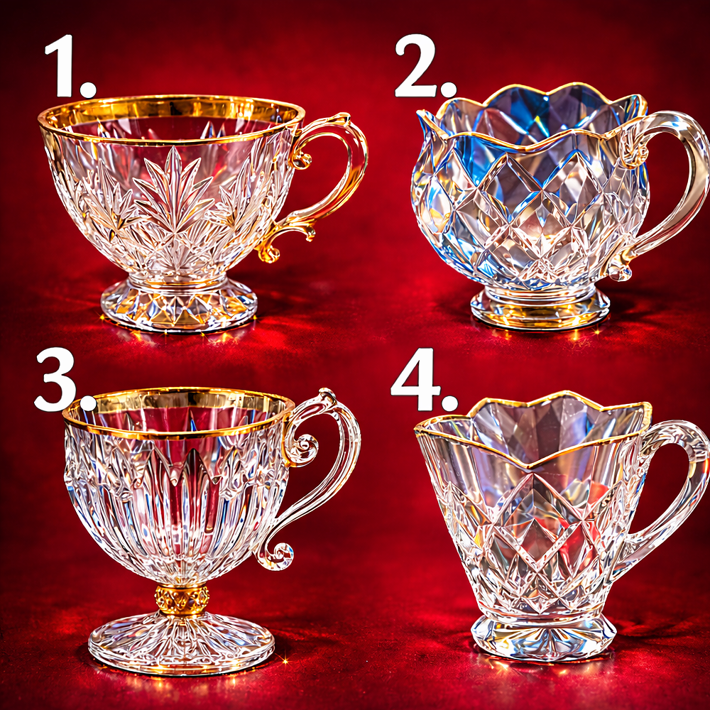 Здравствуйте, друзья! В нашей жизни часто случаются ситуации, когда кажется, что события происходят не случайно. Иногда мы интуитивно чувствуем правильный путь, иногда ошибаемся, и это нормально. Но задумывались ли вы когда-нибудь, насколько сильно вы связаны с судьбой? Насколько тонко вы ощущаете события, которые происходят вокруг вас, и как легко принимаете правильные решения? Сегодня мы предлагаем вам простой и интересный тест, который поможет понять ваш уровень связи с судьбой. Вам нужно всего лишь выбрать одну из четырёх хрустальных чашек на картинке. Как правильно проходить тест * Смотрите на картинку внимательно, но не выбирайте чашку по логике или красоте. * Ориентируйтесь на интуицию и первое впечатление. * После выбора прочитайте описание вашей чашки. Варианты чашек: Чашка 1 Эта чашка выглядит элегантно, с классическим узором и гармоничными формами. Если вы выбрали её, это говорит о том, что вы имеете спокойное восприятие жизни. Вы чувствуете события вокруг, но не всегда дове
