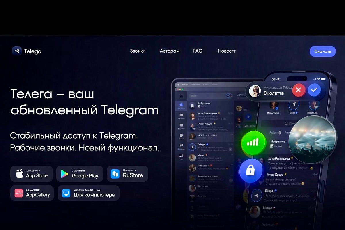 Речь идёт не об официальном Telegram-клиенте, а о приложении «Телега» — стороннем клиенте, который работает на базе открытого и