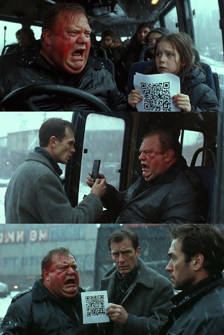 — Я тебе русским языком говорю: выметайся! Не читается твоя бумажка! У меня терминал завис из-за твоего огрызка! Голос водителя маршрутки, грузного мужчины с красной, потной шеей, перекрыл даже рев мотора. В салоне повисла неловкая тишина. Пассажиры уткнулись в телефоны. За окном выла февральская метель, заметая редкие фонари промзоны — самого глухого участка маршрута. Перед водителем стояла девочка лет десяти. В стареньком, явно с чужого плеча, пуховике и стоптанных ботинках. В замерзших, красных руках без варежек она дрожащими пальцами сжимала помятую распечатку с выцветшим QR-кодом льготного проездного. — Дяденька, пожалуйста... — голос девочки срывался на плач. — У меня мама в ночную смену работает. Телефон сломался, она код распечатала. Мне до кольцевой ехать, я пешком не дойду, там собаки... — А мне какое дело до твоей мамы?! — рявкнул водитель, дергая ручку двери. Двери с шипением разъехались, впуская в салон ледяной вихрь. Вали отсюда! Зайцев возить не обязан. Следующий заходит