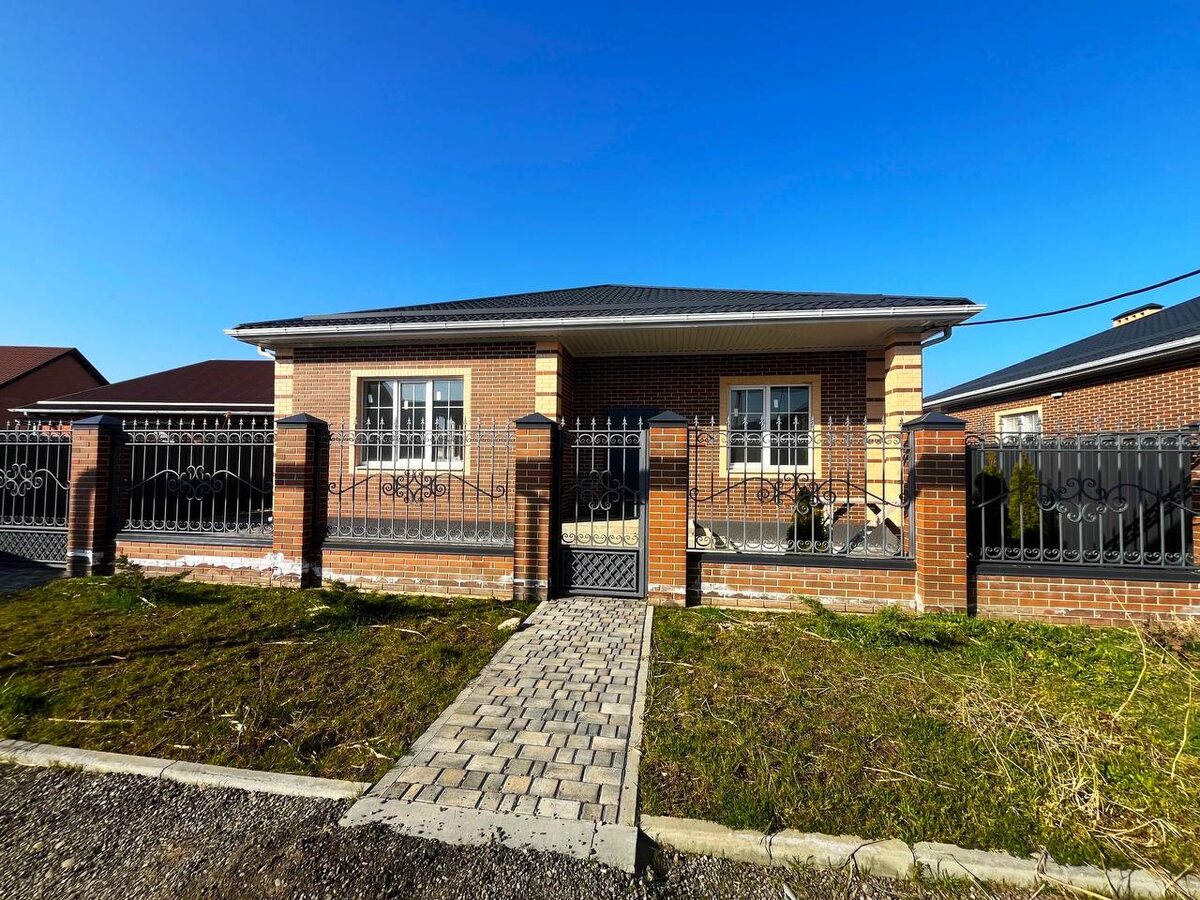 ! 🏡Новый коттедж в поселке Яблоновском. 📍Дом расположен в центральной части посёлка, хорошие подъездные пути, широкие улицы. ❗️Данное предложение подходит для покупки дома в льготную ипотеку: семейную, IT-ипотека. 🌳Одноэтажный коттедж 105 кв.м расположен на земельном участке 4 сотки, ИЖС. ◾️В доме — предчистовая отделка: стяжка пола, штукатурка стен, разводка коммуникаций, радиаторы отопления, двухконтурный котел. ◾️В доме — холл, две спальни, гардеробная комната, просторный санузел и большая кухня-гостиная, которую можно разделить на две комнаты. 🌳Участок огорожен по периметру забором, с фасадной стороны — кирпичные колонны, кованый забор, ворота, калитка. ◾️Двор благоустроен, забетонирован, выложен тротуарной плиткой, парковочные места. 💧Коммуникации: свет — электроснабжение центральное 15 кВт, водоснабжение центральное, канализация — септик, застройщик может подключить газ за допплату. ❗️Дом готов. ❗️Льготная ипотека. 🖊Если остались вопросы, пишите в комментарии