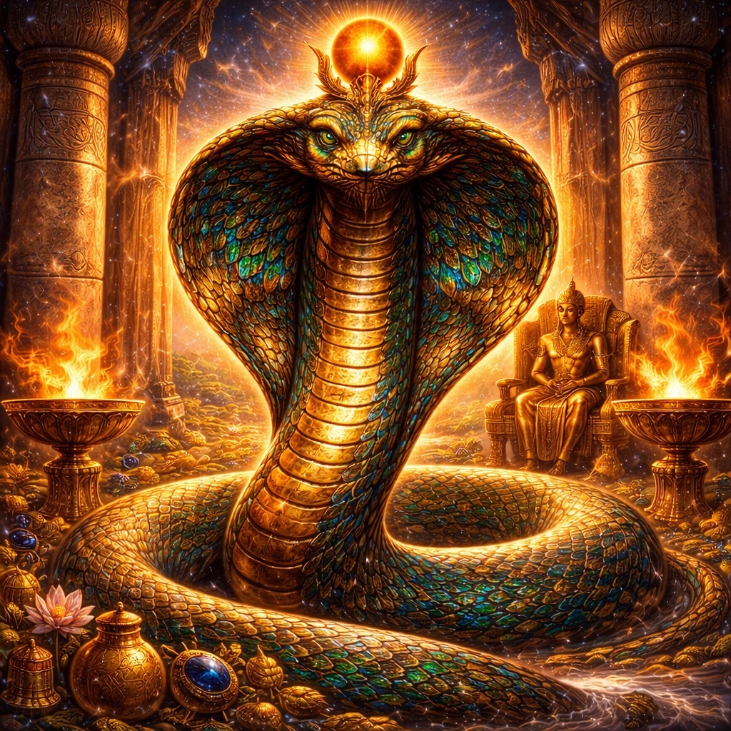 Уаджет — одна из древнейших и самых важных богинь Египта. Она была коброй Нижнего Египта, хранительницей царя, частью урея на лбу фараона и одной из «Двух Владычиц», через которых освящалось единство страны. Её образ соединяет змеиное напряжение, огненную защиту, царскую власть и сакральную границу между миром и врагом.