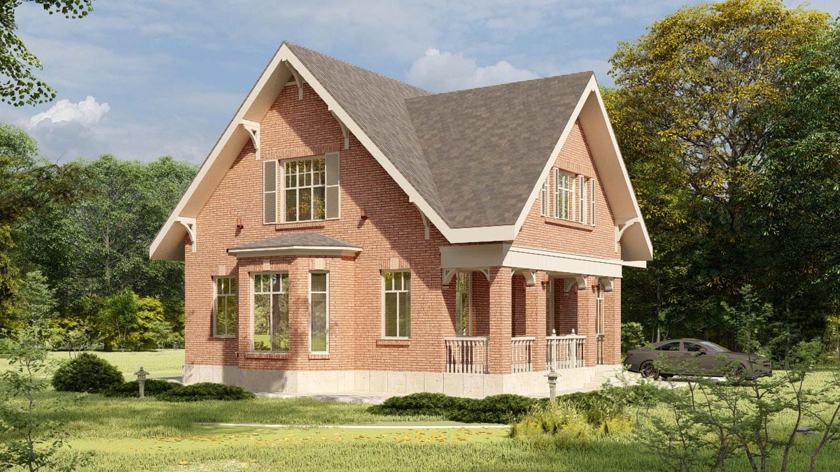 ✅ Проект готовый, порядок заказа чертежей - на основном сайте Дом в английском (или старо-дачном🤔) стиле , с выступающей вперед мансардой над террасой, эркером на боковом фасаде и двумя мансардными окошками на фасадах. Отделка - красный кирпич и белые декоративные детали у окон, дверей, кровли и колонн. Дом рассчитан на проживание семьи из 3 - 6 человек. Левую часть первого этажа занимают помещения дневной зоны. Справа от холла - гостевая спальня, кладовая и котельная с отдельным входом. Планировка не совсем обычная для нашего бюро. Главная спальня здесь на втором этаже (желание хозяев из-за вида на пейзаж). Но можно организовать ее и внизу, устроив вместо кладовки хозяйский санузел. На втором этаже - четыре жилых комнаты, просторная ванная и небольшой кабинет. Лестница двухмаршевая эргономичная. Главная спальня может быть дополнена кладовками под свесами кровли (серая заливка). Фундаменты выбираются исходя из гидрогеологических условий на участке строительства.