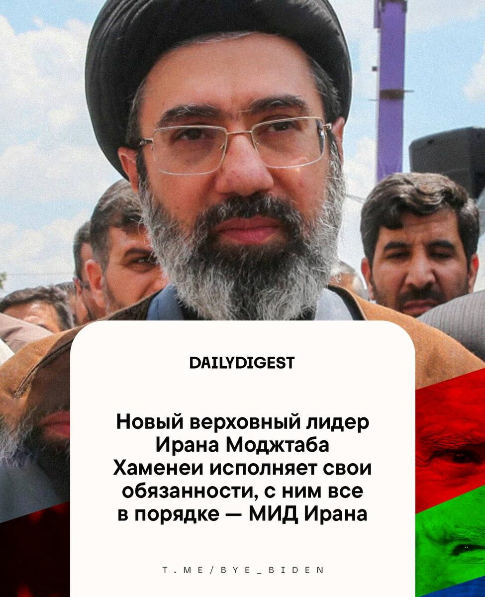 : 🔹Новый верховный лидер Ирана Моджтаба Хаменеи исполняет свои обязанности, с ним все в порядке — МИД Ирана. 🔹США утратили контроль над операцией против Ирана, заявил сенатор Мерфи. 🔹Эксперты беспокоятся за долгосрочные экологические последствия ударов по Ирану. 🔹У Израиля заканчиваются ракеты-перехватчики, их запасы истощились до критически низкого уровня. 🔹ЕК недостаточно давит на Зеленского, заявил Фицо. 🔹Трамп пообещал восстановить связанные с нефтью санкции против РФ, когда стабилизируется ситуация с ценами, выросшими на фоне операции против Ирана. 🔹Такера Карлсона хотят признать иноагентом в США. 👍«БайБайден» в МАХ