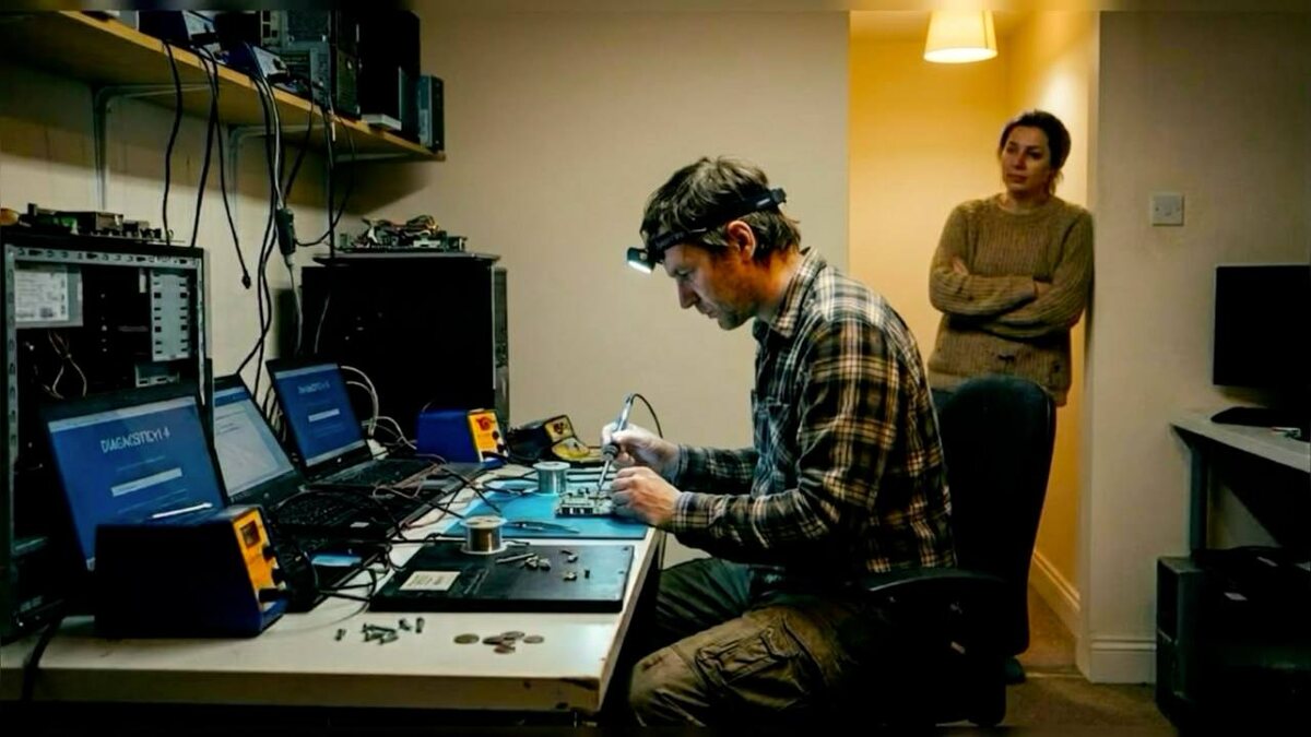 Виктор сидел в углу единственной комнаты, который он гордо называл «мастерской». На столе — гора разобранных плат, мультиметр и паяльник. На лбу — налобный фонарик, единственный источник света, чтобы не мешать спящему сыну. Мальчик спал за шторкой, которую Вера повесила вместо двери. У них не было денег на нормальный ремонт.