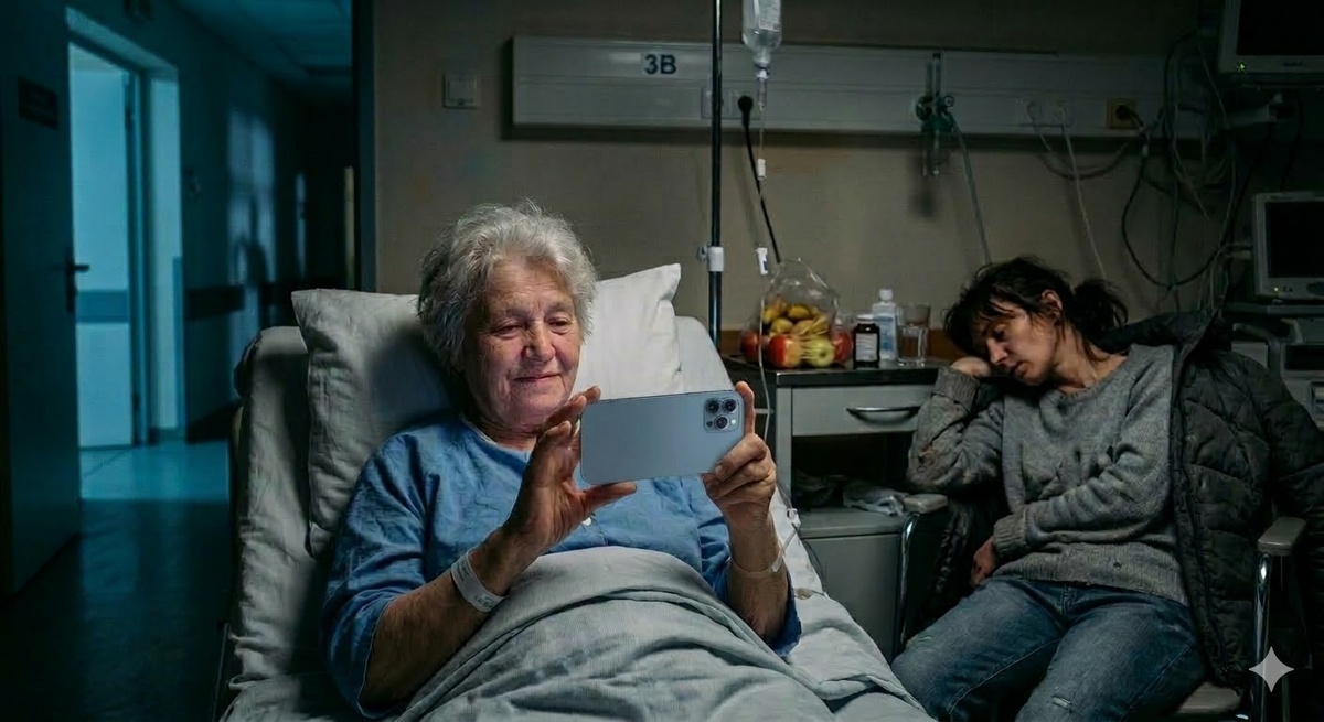 Приёмный покой. Запах хлорки. Марина спит в кресле рядом с койкой — третью ночь подряд, не уходила. На экране её телефона — пропущенные с работы.