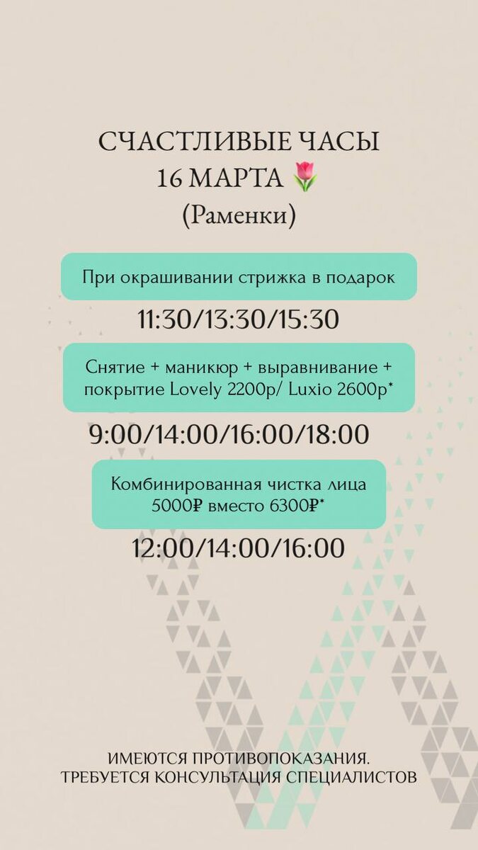 16 МАРТА (завтра)🌷 Окна на сегодня 👈 Не упустите возможность записаться на любимые услуги со скидкой 20% Акции и скидки не суммируются! Для записи👇🏻 📞 +7(499)4553857 💌 @womansalonchat