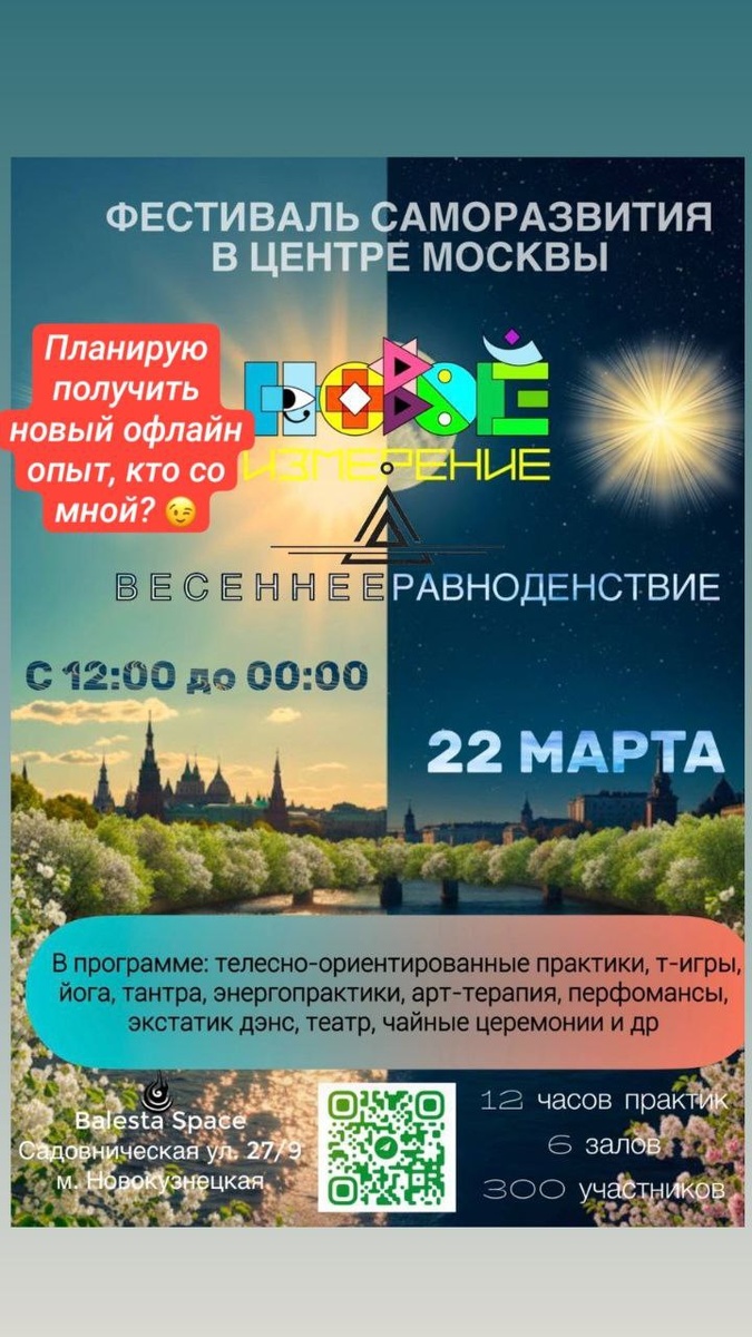 Планирую получить новый офлайн опыт на массовом мероприятии "Новое Измеренение" 22 марта с 12:00 до 00:00 - ❣кто со мной