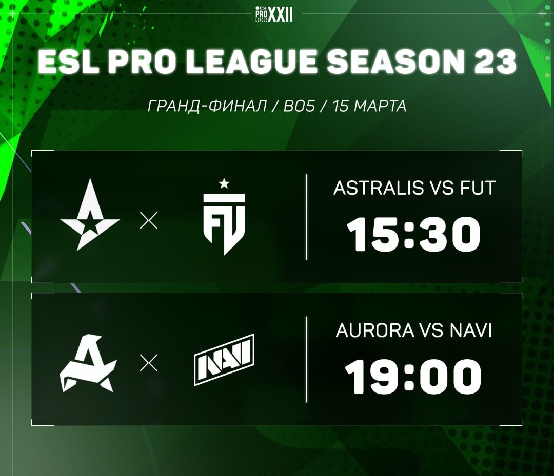 ΠΠ°ΡΡ Π·Π° ΡΡΠ΅ΡΡΠ΅ ΠΌΠ΅ΡΡΠΎ Π½Π°ΡΠ½ΡΡΡΡ Π² 15:30. Π Π½ΡΠΌ Π²ΡΡΡΠ΅ΡΡΡΡΡ πͺπΊFUT ΠΏΡΠΎΡΠΈΠ² π©π° Astralis. ΠΡΠΎ ΠΆΠ΅ ΡΡΠ°Π½Π΅Ρ ΡΠ΅ΠΌΠΏΠΈΠΎΠ½ΠΎΠΌ? β€οΈ β πΉπ· Aurora π β πͺπΊ NAVI π Esports.ru | CS