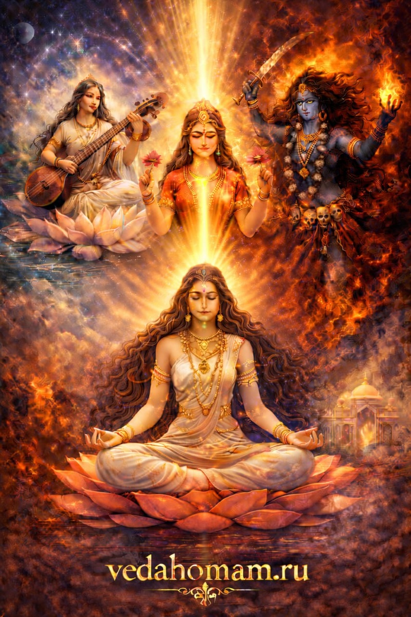 ? Я просто потребляю то, что мне выдала Мать Природа или я сотворяю вместе с ней, что-то новое? Я работаю или я творю? Творение не может быть без глубинной связи со своим Центром, тем самым Истинным Я. Зато при соединении, любое действие становится Творением! В этом интересно наблюдать за энергиями Кали и Сарасвати. Сарасвати может проявлять себя на разных уровнях - от сотворения мира, и творения ребенка в лоне матери, до творения прекрасного в этом мире. Кали может быть разрушительной в нижних центрах, и нести Свет в высших центрах, когда материя распадается и остается лишь Свет и состояние полного самоосознания. Лакшми, пребывая в сердце, являет собой центр, способный озарить все миры. Участие в ягье Шри Махадеви Наваратри ягья 19 марта Дурга пуджа и медитация Махавишну манаса-ягья 26 марта Элена Шанти Деви Мара (написать в личку) Ведические духовные практики Ссылка на канал Вконтакте Ссылка на канал в Max