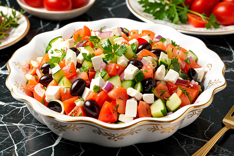 Салат греческий классический с фетаксой — это настоящая кулинарная визитная карточка Средиземноморья, воплощающая в себе простоту, свежесть и невероятный вкус. Его секрет кроется в гармоничном сочетании спелых овощей, ароматных трав, соленых оливок и, конечно же, нежной фетаксы. Заправка на основе оливкового масла и лимонного сока придает салату особую пикантность, делая его идеальным выбором для легкого обеда или ужина, а также прекрасным дополнением к любому праздничному столу. Этот рецепт поможет вам приготовить настоящий греческий салат, который порадует вас и ваших близких.