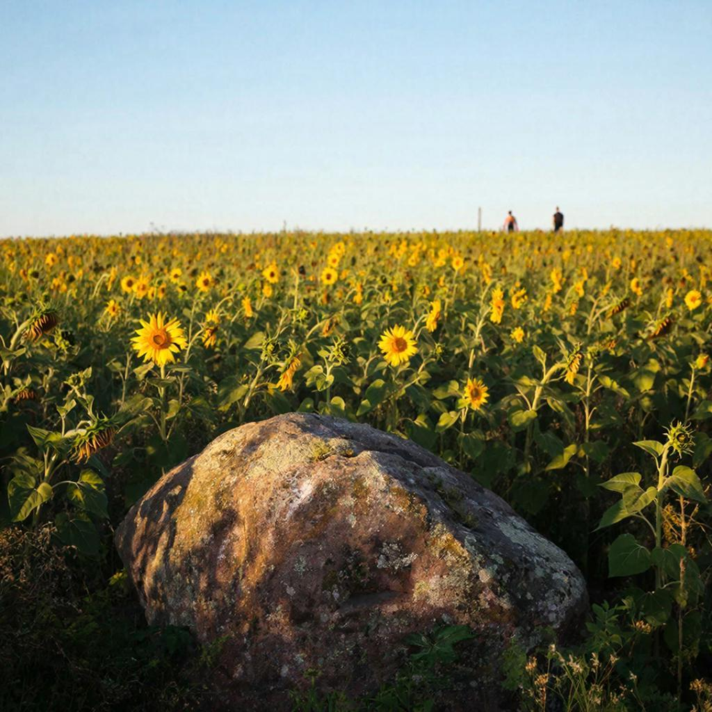 Раннее утро августа 1943 года. Поле за деревней Ольховкой было усыпано подсолнухами — их жёлтые головы покачивались на ветру, будто кивали солдатам, идущим в бой. Среди них, чуть в стороне от основной линии наступления, притаился сержант Пётр Волков. Он должен был прикрывать отход своего взвода: после неудачной атаки бойцы отступали к лесу, чтобы перегруппироваться. Пётр остался один с пулемётом, парой гранат и запасом патронов — достаточно, чтобы задержать немцев на какое‑то время. Он выбрал позицию у большого камня, замаскировался ветками и подсолнухами. Отсюда хорошо просматривалась дорога, по которой, как ожидалось, пойдут немецкие танки и пехота. Руки немного дрожали, но Пётр глубоко вдохнул, выдохнул и принялся проверять пулемёт. Через полчаса на дороге показались первые машины. Пётр сжал зубы и приготовился. Когда колонна подошла ближе, он открыл огонь. Первая очередь пришлась по мотоциклистам — двое упали, остальные бросились в кювет. Затем он перенёс огонь на бронетранспортёр: